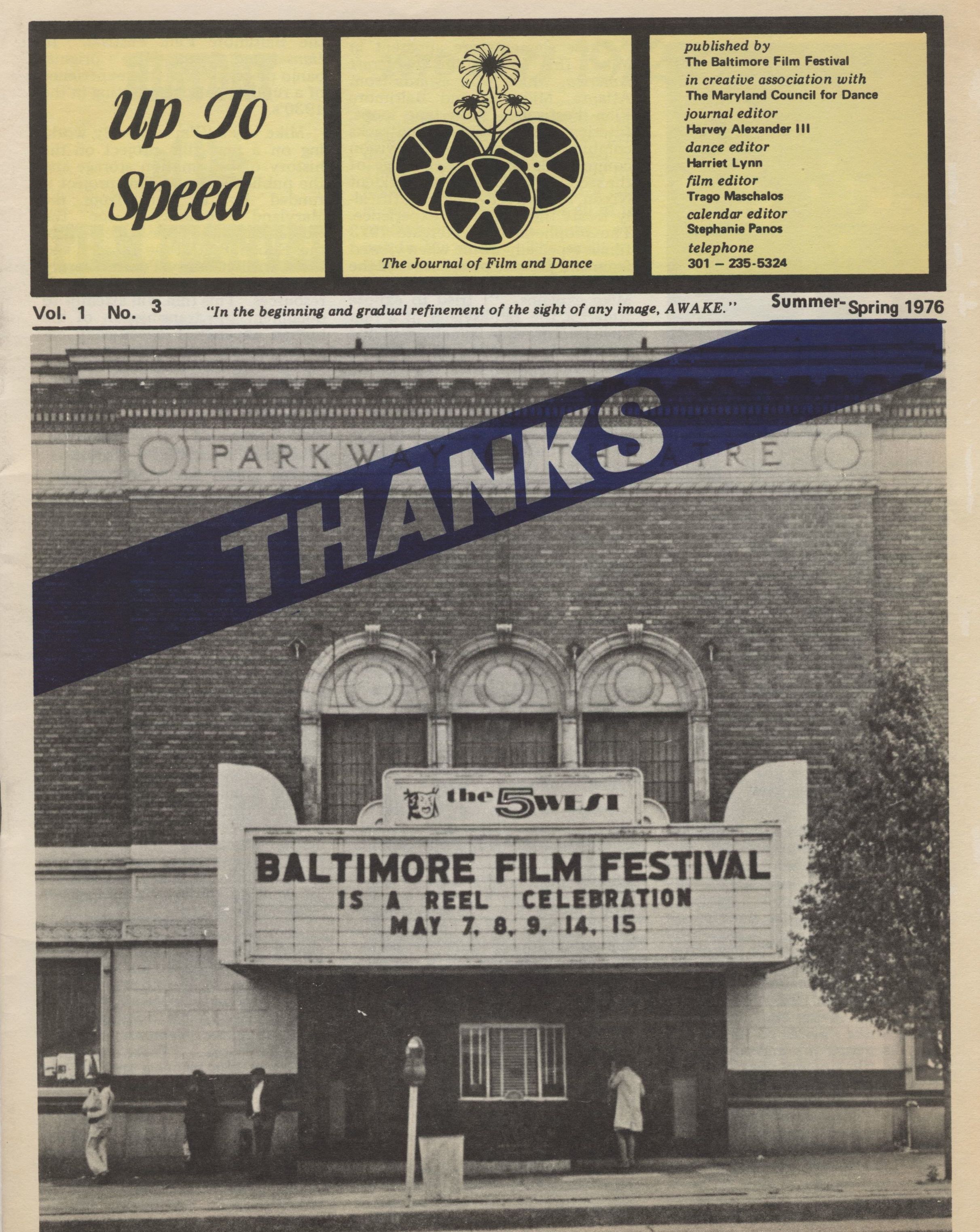 Tonight is the opening night of the Maryland Film Festival–a personal highlight of the year for me. It is especially sweet this year as I now live and work in Baltimore! Strangely enough, it seems that I had more time to blog about Maryland moving images when I lived in California. Now that the overlap between work and hobby is even more closely intertwined I find myself really slacking on MarMIA. A recent blog post that I wrote for work got me curious about previous Baltimore-area film festivals and figured it would be a great topic to FINALLY write about here.