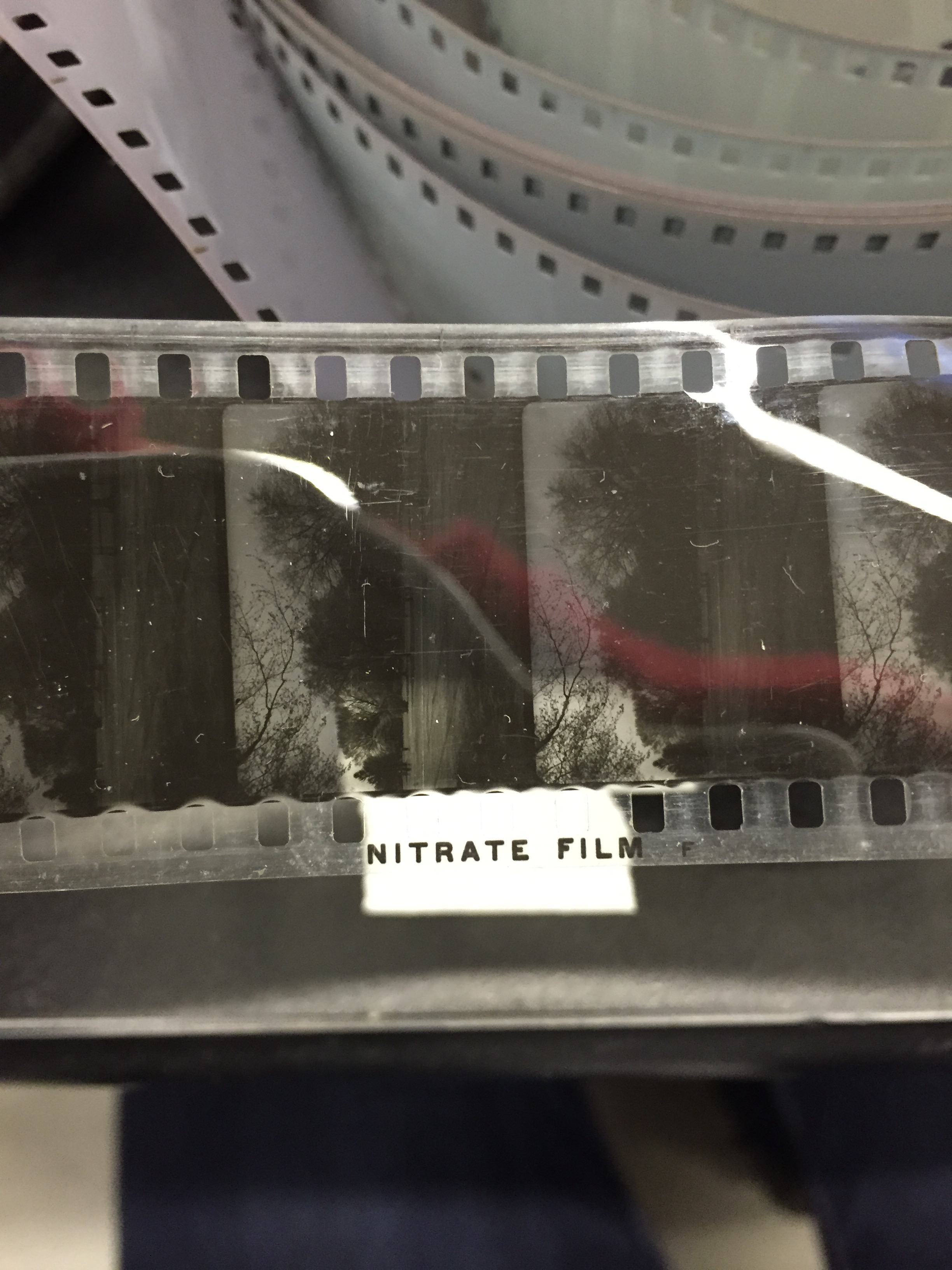 The majority of the audiovisual items in the Hood College archives are 16mm film, although there was also a strong presence of video and audiotape in the stacks. My assessment focused only on the 16mm and Super 8mm film items, but one exception was partially made for a nitrate 35mm film in the collection. The exception was made because, A.) I wanted to confirm whether it was nitrate or not, and B.) it was relatively easy to figure this out (I just took a quick look wearing gloves, and there was the word “NITRATE” along the film’s edge).