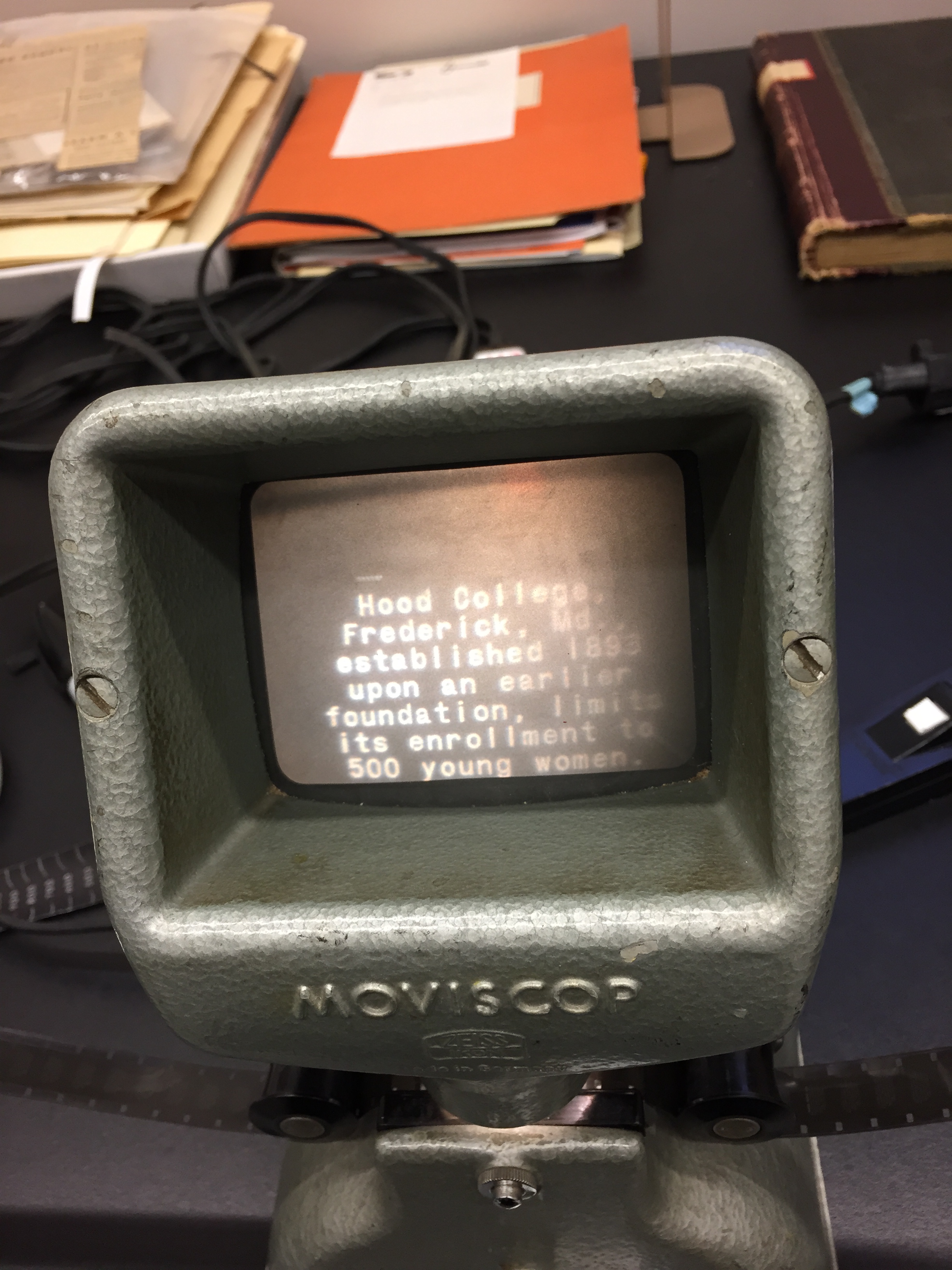 Recently I had the opportunity to do some freelance film inspection at Hood College in Frederick, Maryland. Having gone to high school in Frederick County, my junior and senior year prom dances were all held at this small, picturesque city campus. I never really got to know much about this historic college other than it used to be an all-female college until the 1970s, so my few days’ work was particularly interesting. There is nothing like learning about a place or person for which you have a solid image in your mind, only which seems to morph into unexpected depths the more you learn about them.