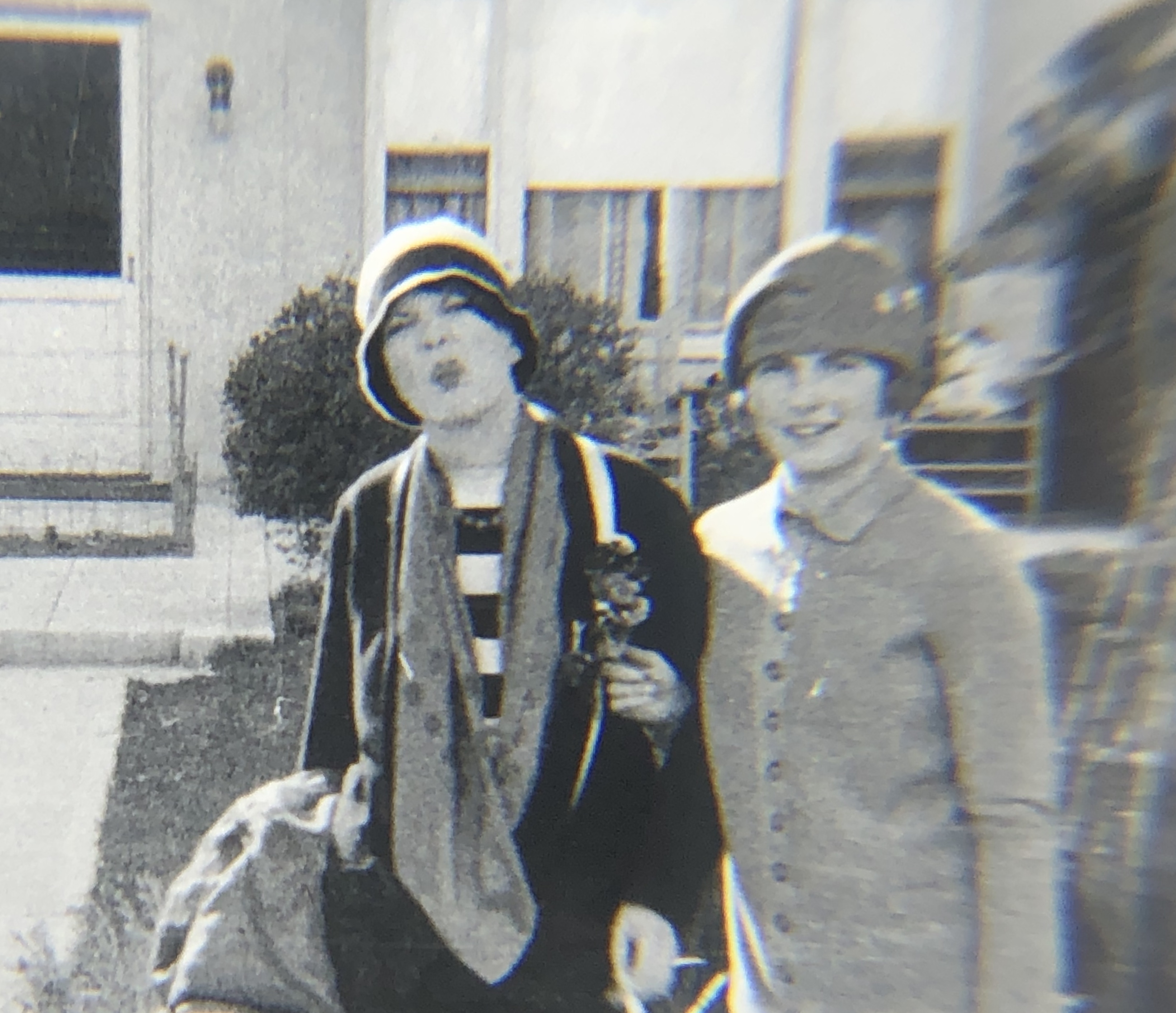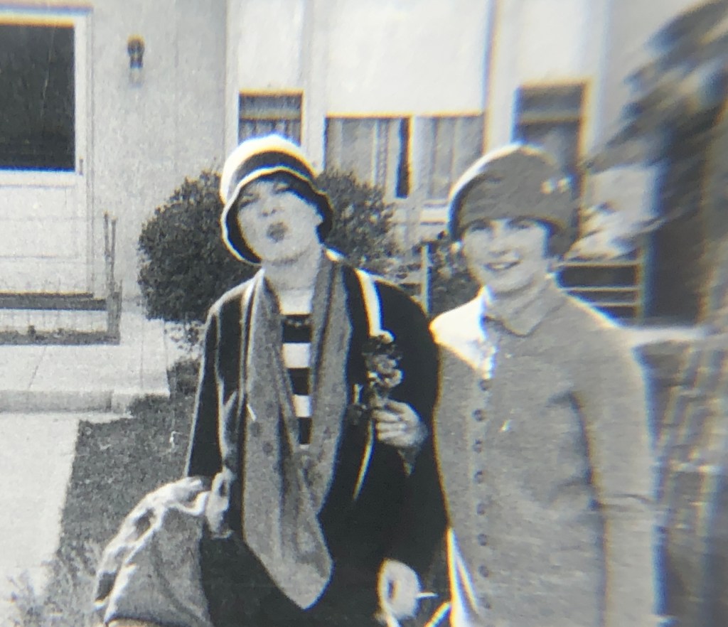 Lastly, there is a brief shot of two women, one wearing a striped dress who is almost certainly Zelda Fitzgerald, standing together on a sidewalk at the Ambassador, arms linked. Zelda sticks her tongue out at the camera while a young boy walks by in the background. The other woman appears to be Lois Moran.
