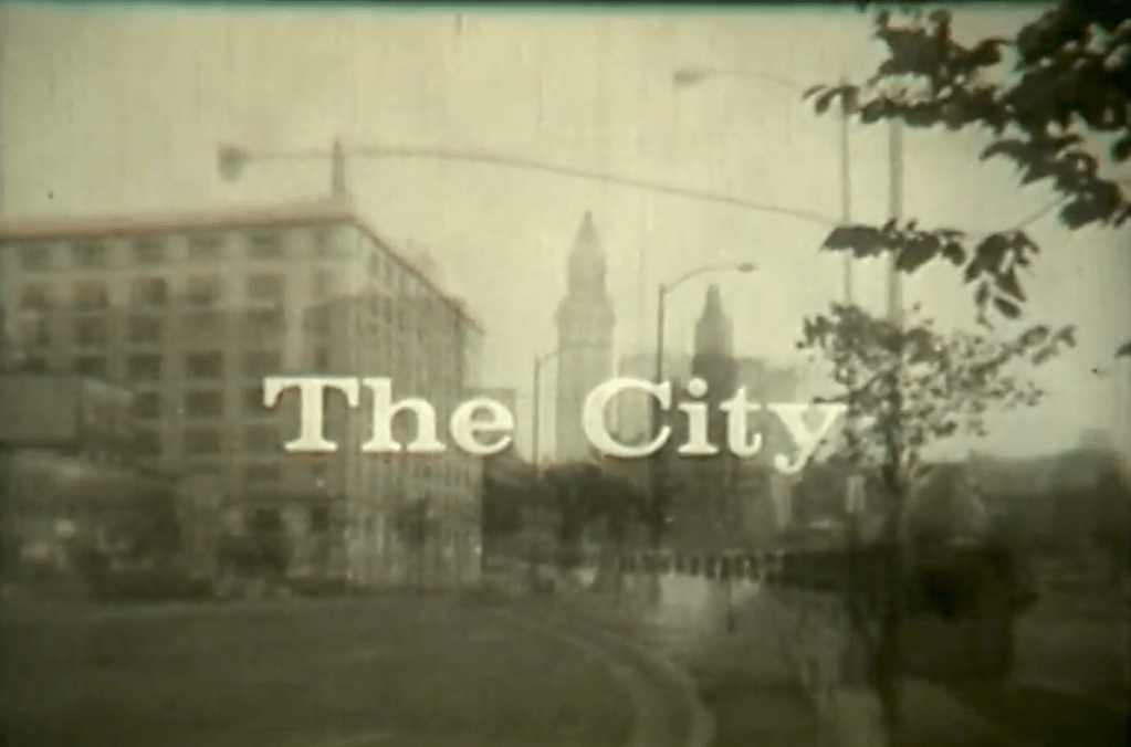 Two of the tapes we found were the first episode which was a 24-hour survey of Baltimore. One has narration and one does not. In total, we have about nine Focal Point episodes on film, Umatic, and Betacam. Six of them have been digitized so far and the remaining three are on film. The first one titled, “The City” or “The Sound In the Street” (1961) is a hello to Baltimore and an introduction to the series as it touches upon some issues that would be covered in later episodes.