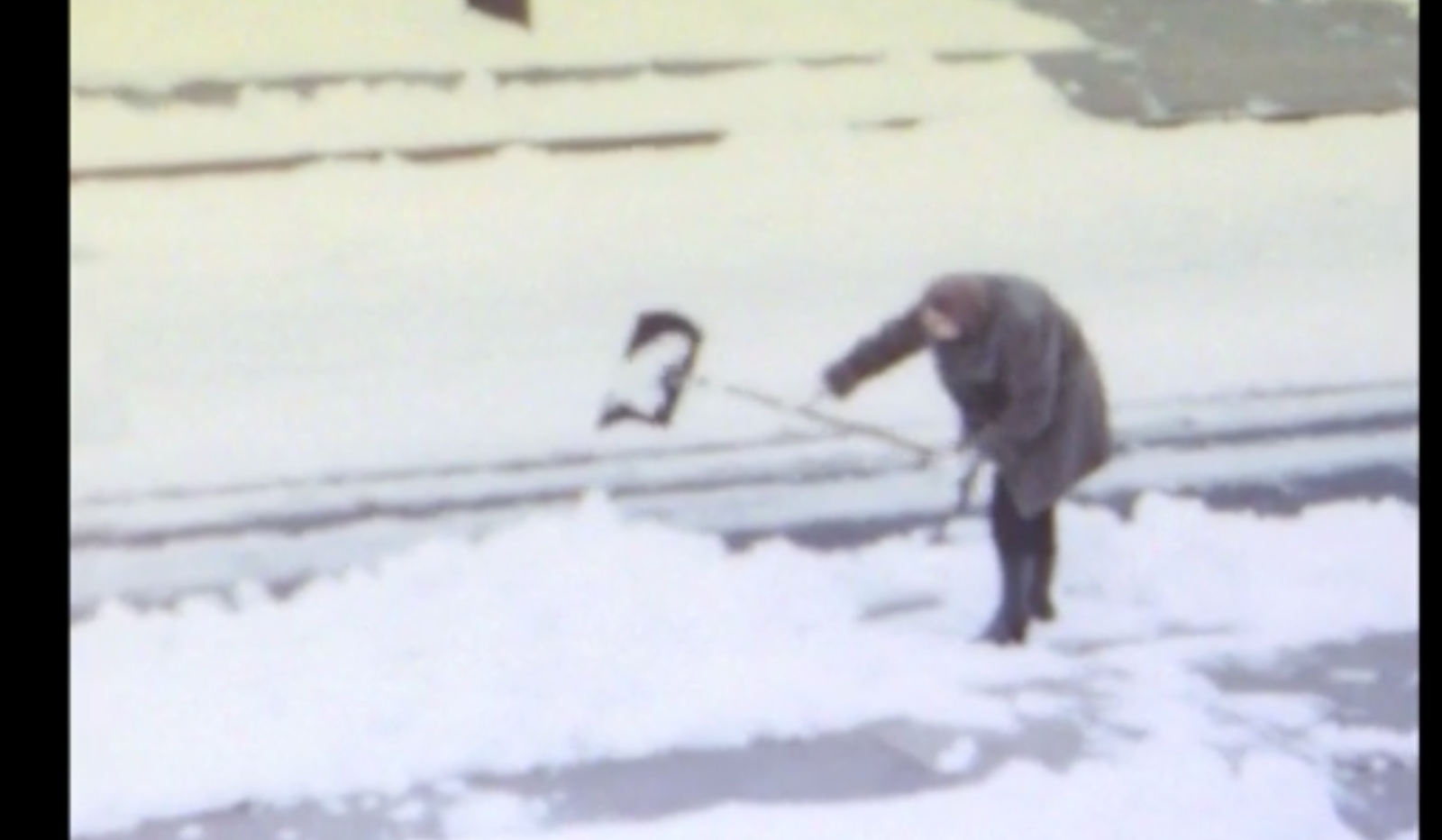Shoveling snow in Baltimore, from Home Movies 1 in the Ryan Collection.