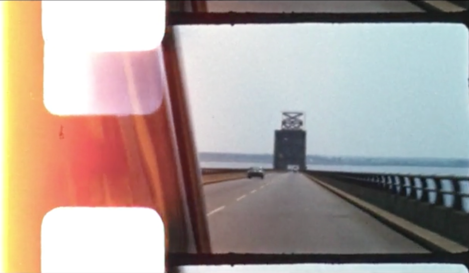 A shot of the Bay Bridge as a single lane, from the Ocean City film in the Ryan Collection.