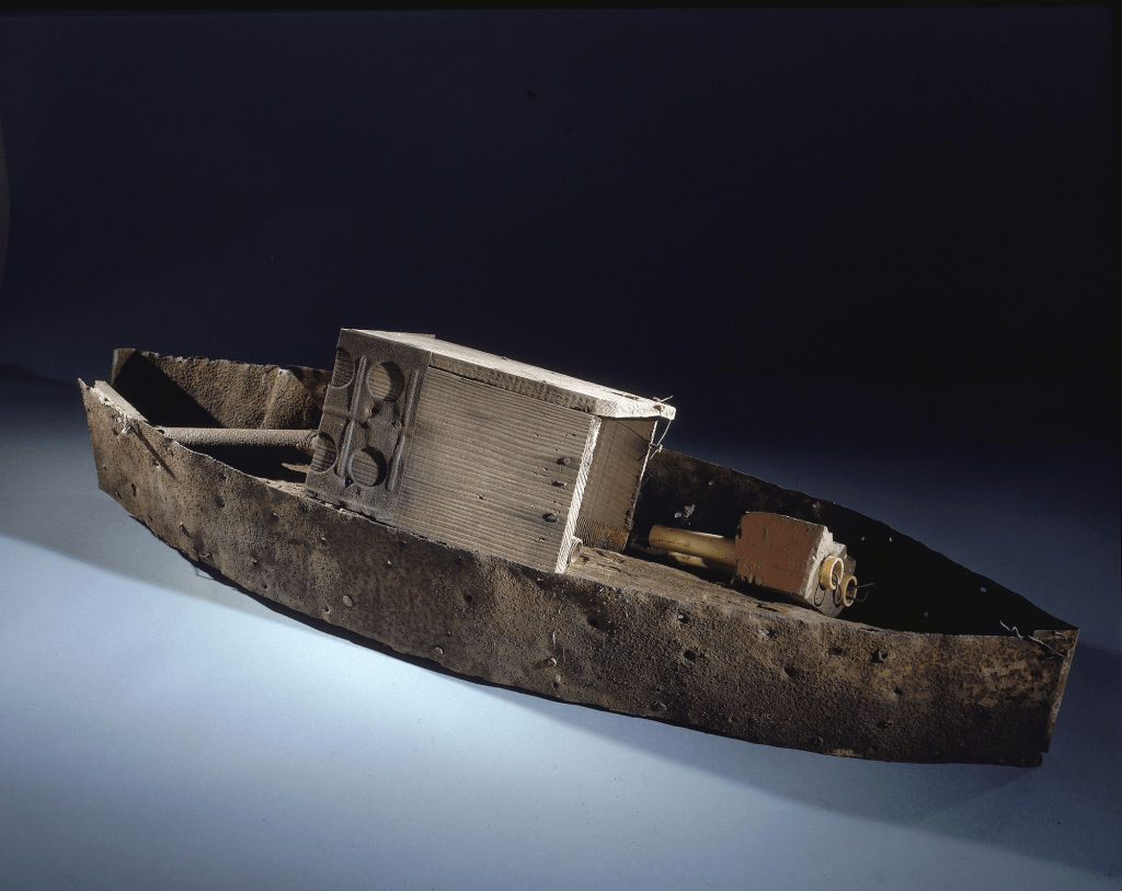 Flax grew up around Norfolk, Virginia, and lived in Yorktown. Growing up in a Navy community, he had aspirations to join but ultimately made a living as a handyman. Over sixty years, he created over 100 scrap metal and wood vessels in his yard. One work, Untitled (Ship) can be seen in the collection of the Smithsonian American Art Museum thanks to a gift by folk art collectors, Chuck and Jan Rosenak. Flax passed away the year after this prime-time feature in Evening Magazine.