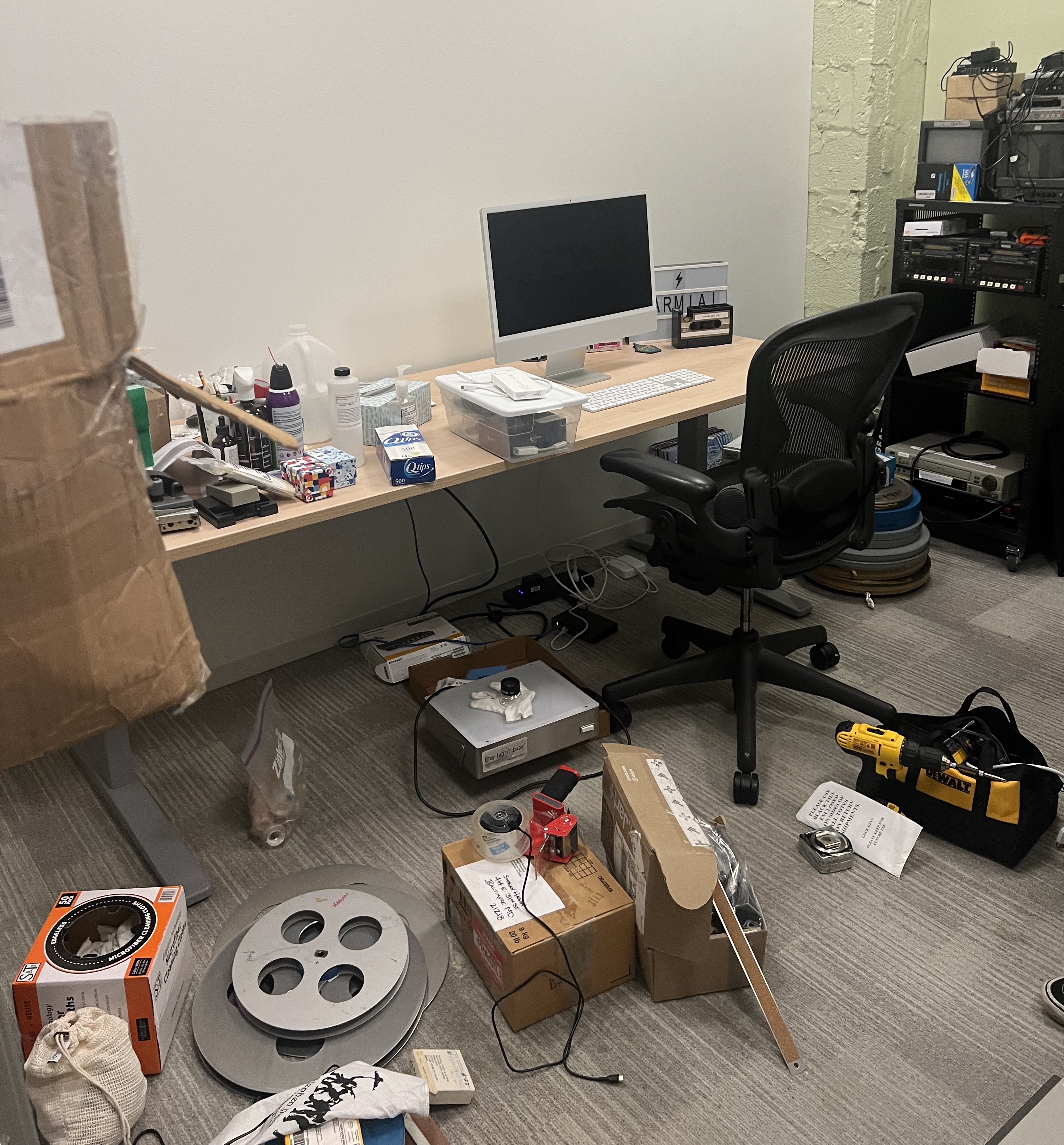 MARMIA has grown so much in the last 3 years–we had our first paid staff join us (more than one!) and now thanks to the Mellon Foundation we have the film scanner of our dreams! While we loved our previous office companions at Impact Hub Baltimore, you can see from the below photo that we were outgrowing our one small office.