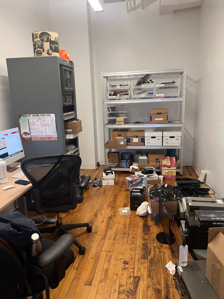 Which is such a wonderful problem to have! But we need your help to fill our new office with tables and shelves that will enable us to do our work to preserve and provide access to the moving images and recorded sounds of the US Mid-Atlantic region. Plus, the move was expensive as we had to contract movers to help us safely transport our very important film scanner and other delicate equipment–and we had to paint some very yellow walls. As previous donations have shown us in the past, every size donation helps–if you can only give $5, that will mean the world to us and help us get closer to our goal. We know budgets can be tight this time of year, but if you feel moved to help us and can safely do so, please donate at our PayPal campaign (or mail a check to our new address at Motor House!) to help us do our important community-focused work. Thank you!